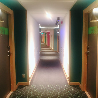 不過我只需要付 500 NOK (約 1500 NTD)。 剩下的當地政府會補助,聽到後安心許多。看到繽紛七彩的旅館覺得滿可愛的啦!٩(๑❛ᴗ❛๑)۶